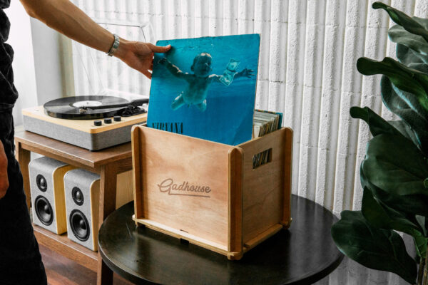 GADHOUSE Vinyl Record Storage Crate – Classic Plywood Record Holder for Albums – Self Assembly Wooden Storage Box for up to 45 Records – 15x 11x 11.8 Inches.