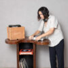 - VINYL RECORD HOLDER: Safeguard your precious collection with this decorative wooden crate for vinyl display; Compact 15″ x 11″ x 11.8″ size allows to store up to 45 records comfortably.