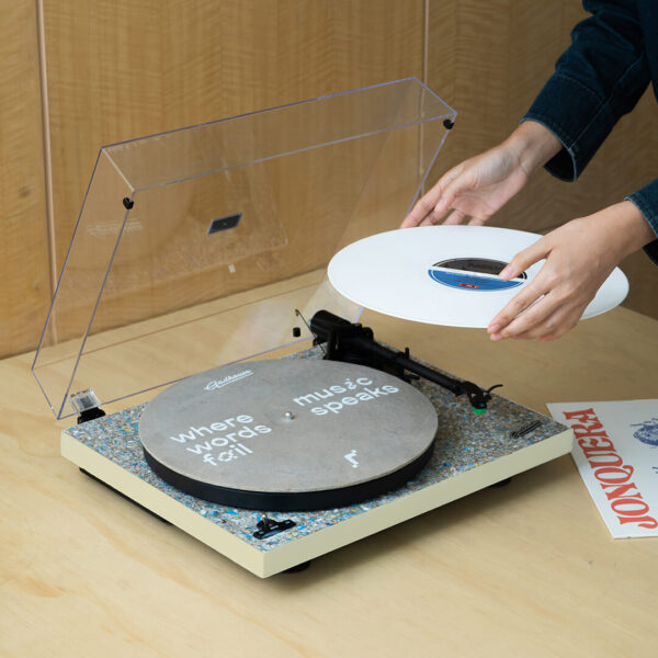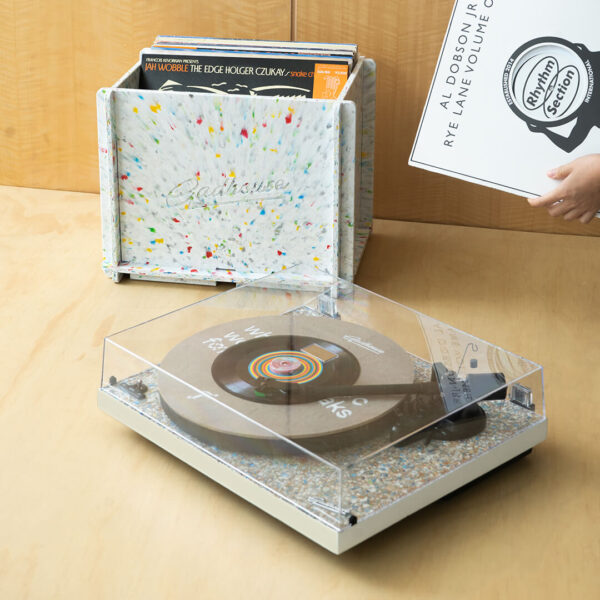 Mathis Reimagined is not just a reinvention of the space-age turntable, he is a testament to our dedication of bridging the worlds of music and environmentalism. Expect the familiar, HI-FI qualities of Mathis with a twist – an exterior made with Earth-friendly material. Each Mathis Reimagined is crafted using 370 UHT milk cartons that are sourced by local waste collectors and sent to recycling facilities to produce a new material that is not only durable and aesthetically unique but also reduces our carbon footprint. Let’s save the world together, one spin at a time.
