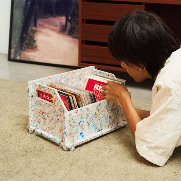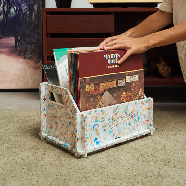 The Modular Record Duo Crate is the ultimate storage solution for vinyl collectors, combining eco-friendliness with functionality. Designed to accommodate both 7″ singles and 12″ LPs, this crate is made from recycled bottle caps, reflecting our commitment to sustainability. It offers a stylish and durable way to organize your vinyl collection while supporting a greener planet. With a compact design and built-in handles, it’s easy to move and ideal for small spaces.
